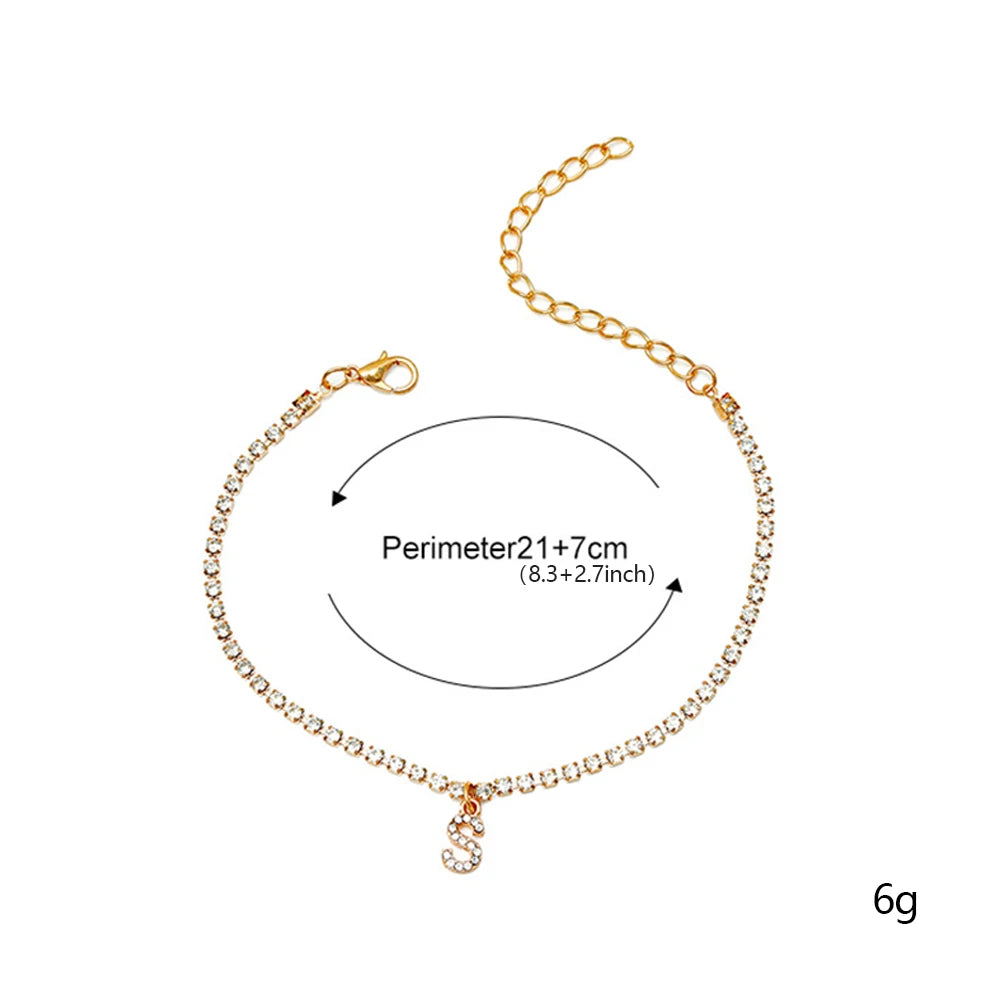 Chevillère Alphabet Brillante 💎 Lettre Initiale Strass – Bijou de Cheville Bohème Femme